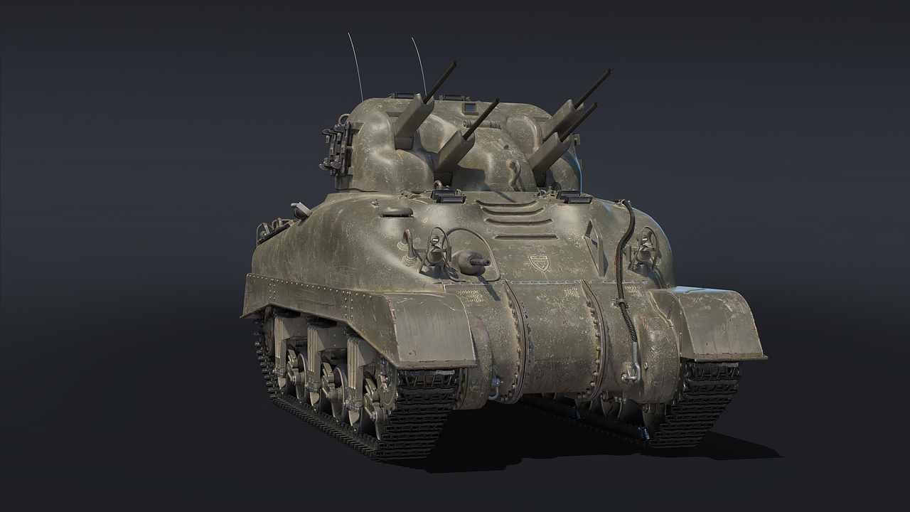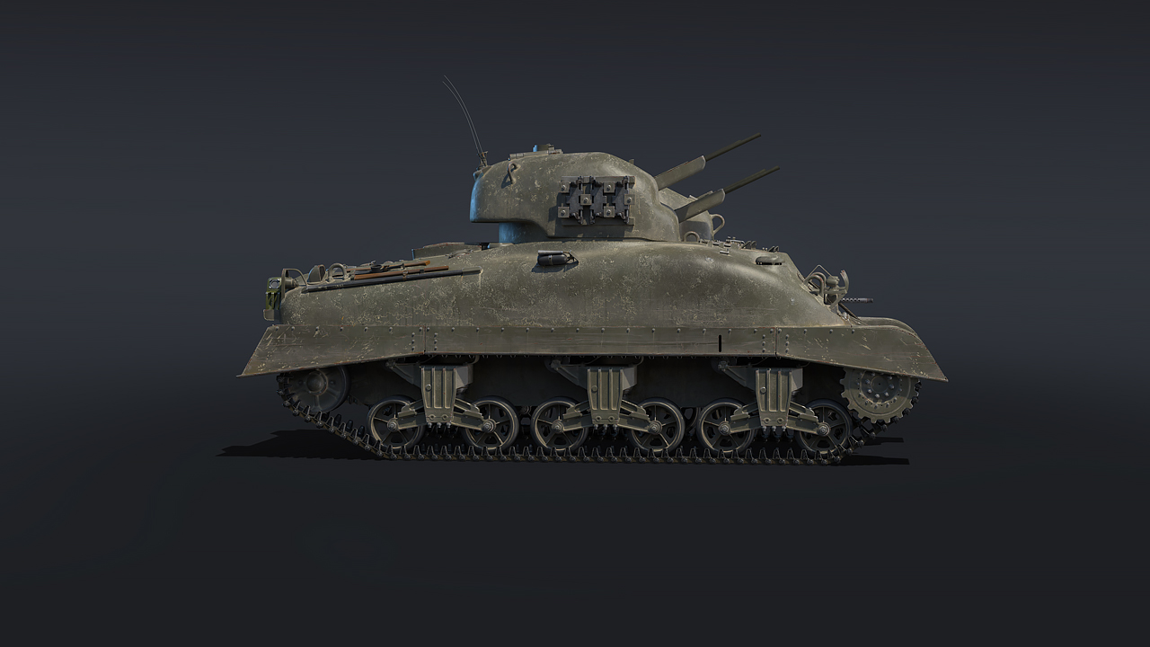 The Skink is based on the Grizzly I medium tank, which in turn represents the Canadian license-produced version of the American M4A1 Sherman tank. Therefore, the Skink inherits the characteristic Sherman mediocre protection: it’s able to deflect the occasional medium-caliber anti-tank round but it remains vulnerable to high-powered anti-tank cannons such as the German PaK 40, even at longer engagement distances. Yet the Skink offers one crucial advantage over the Wirbelwind that all of its aspiring commanders will appreciate: an enclosed turret. Unlike the open-topped Wirbelwind, the Skink is immune to strafing aircraft, in turn making it even more dangerous to pilots since it can’t be destroyed as easily!