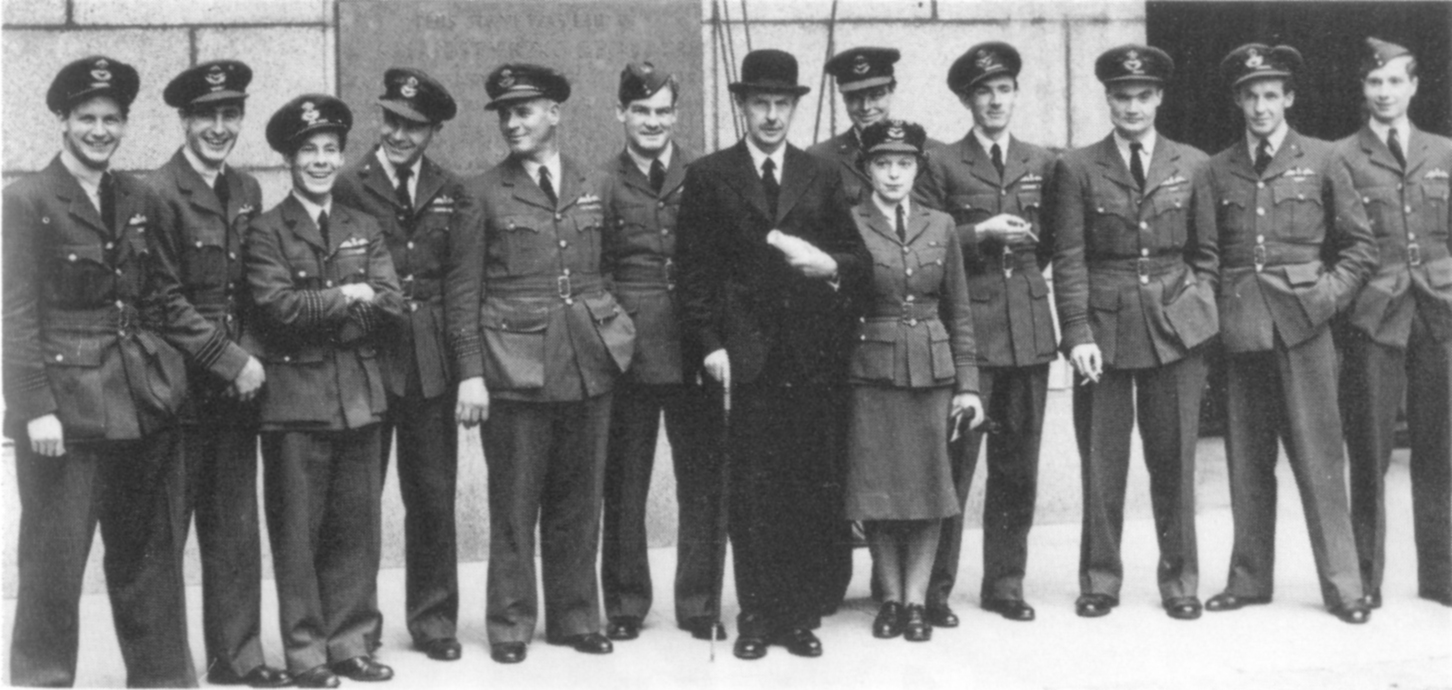 | Dowding mit einer Reihe der "The Few". Frauen arbeiteten in Bereichen wie der Kommunikation, Kartenaktualisierung und Radarerfassung. Einige gaben für die Sache ihr Leben. |