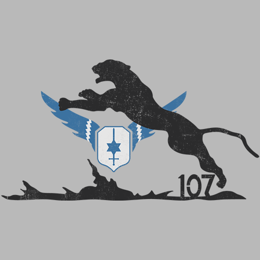 The emblem of 107 Squadron’s Operational Training Unit, IAF. 107 Squadron was formed in February 1953 at the Ramat David airbase, as a response to the rapid expansion of the IAF, which necessitated swift and effective training for new pilots. The squadron was equipped with at least 39 Mk IX Spitfires, and successfully trained 21 fighter pilots between 1953 and 1954. The squadron operated in this form until 1956 when the Spitfires were retired, but would later reform as a Meteor and Ouragan squadron several years later. The emblem of the OTU depicts a tiger in silhouette leaping over the IAF insignia, and was often painted behind and below the engine exhaust on several of the squadron’s Spitfires.
