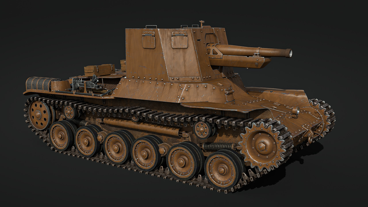 Meet the largest-caliber self-propelled gun in the Ho-Ni family, arriving at rank II in the Japanese ground forces tree. The main feature that distinguishes the Ho-Ni II from its siblings is the gun. The oscillating part of the 105 mm Type 91 field howitzer is mounted on an armor shield, firing high-explosive and AP rounds. The AP round’s penetration is enough to destroy most targets at its rank, including T-34s and Shermans if you aim for their weakspots! The gun has a limited traverse angle of 10 degrees left and right, so in most cases you’ll have to aim the hull towards your target. Due to the gun’s long breech, elevation is also limited to 22 degrees, but the gun’s depression is at an excellent -17 degrees, allowing you to shoot from behind cover effectively.