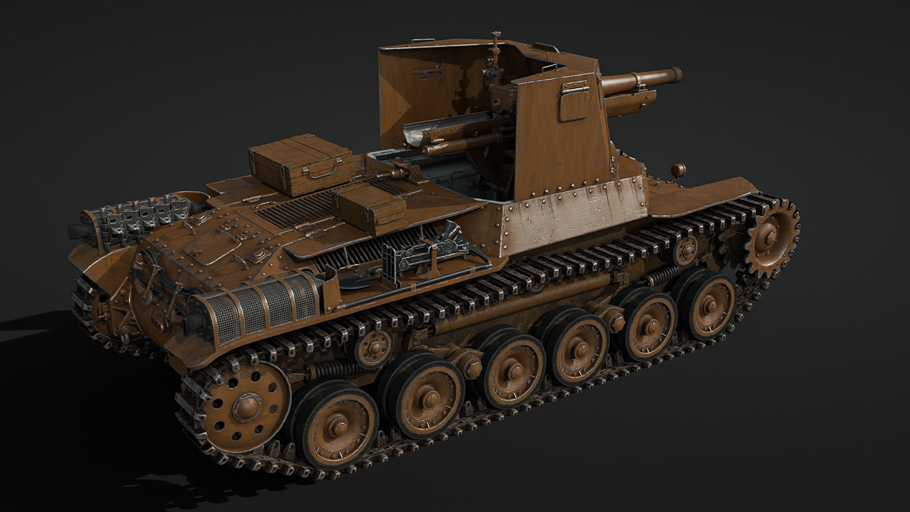 The chassis of the Ho-Ni II derives from the Chi-Ha medium tank, giving it decent mobility with a top speed of up to 40 km/h. The superstructure however is very lightly protected just like the Ho-Ni I. The front and some of the side armor is at least bulletproof, but the crew are completely exposed from the top and the rear, making them especially vulnerable to machine guns and aircraft.