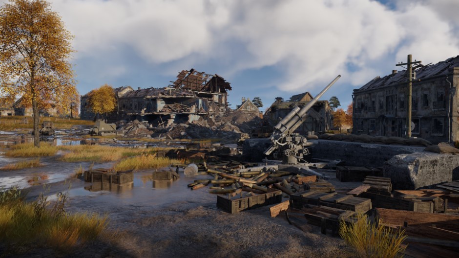The spacious autumnal Ardennes location has also been completely redesigned. Abandoned fire positions, collapsed houses, puddles and mud, and, of course, trees covered in autumn gold, all now rendered in modern graphics standards with a wealth of fine detail. All general navigation remains unchanged: all approaches, bypasses, and terrain. Among the interesting new features, note the abandoned equipment, bulldozers and tractors, which can now be used as temporary, mobile shelters when pushed forward.