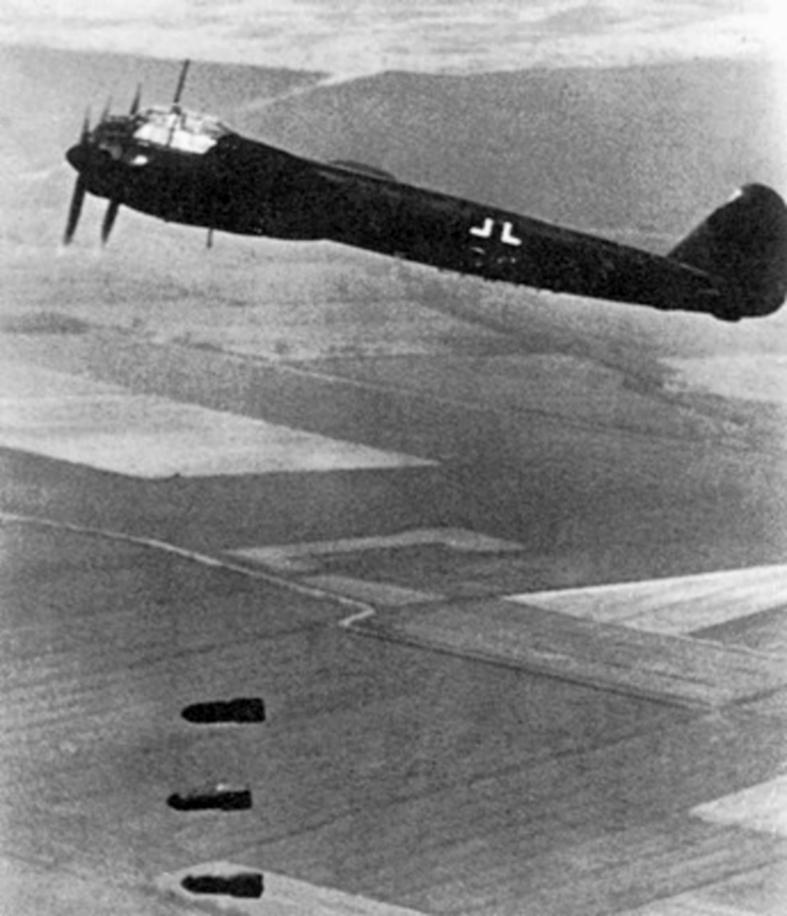 | Junkers Ju 88A larguant des bombes au-dessus de l'Angleterre |