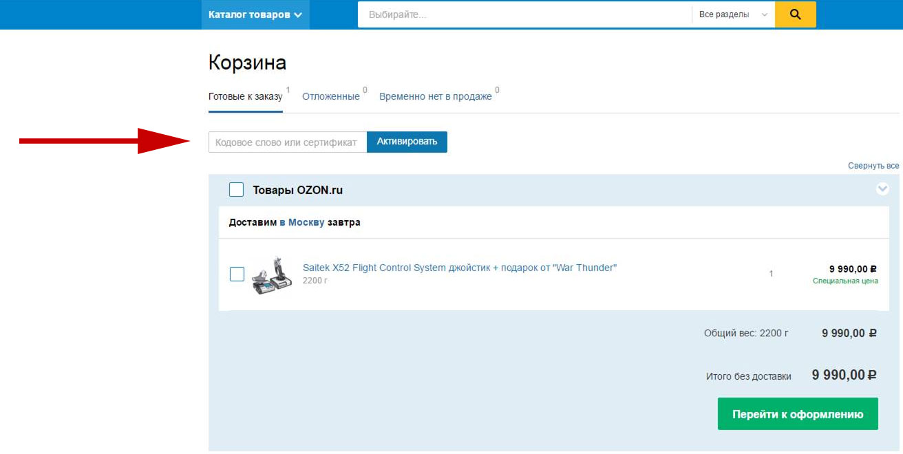- До того как подтверждает заказ, покупатель вводит промокод «saitek» (без кавычек) в окошко в левом верхнем углу «Кодовое слово или сертификат Активировать».
