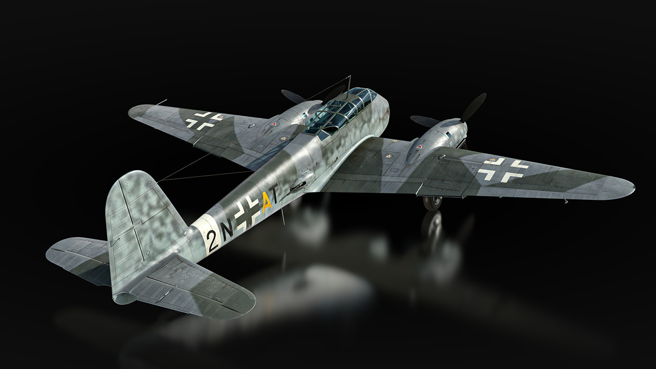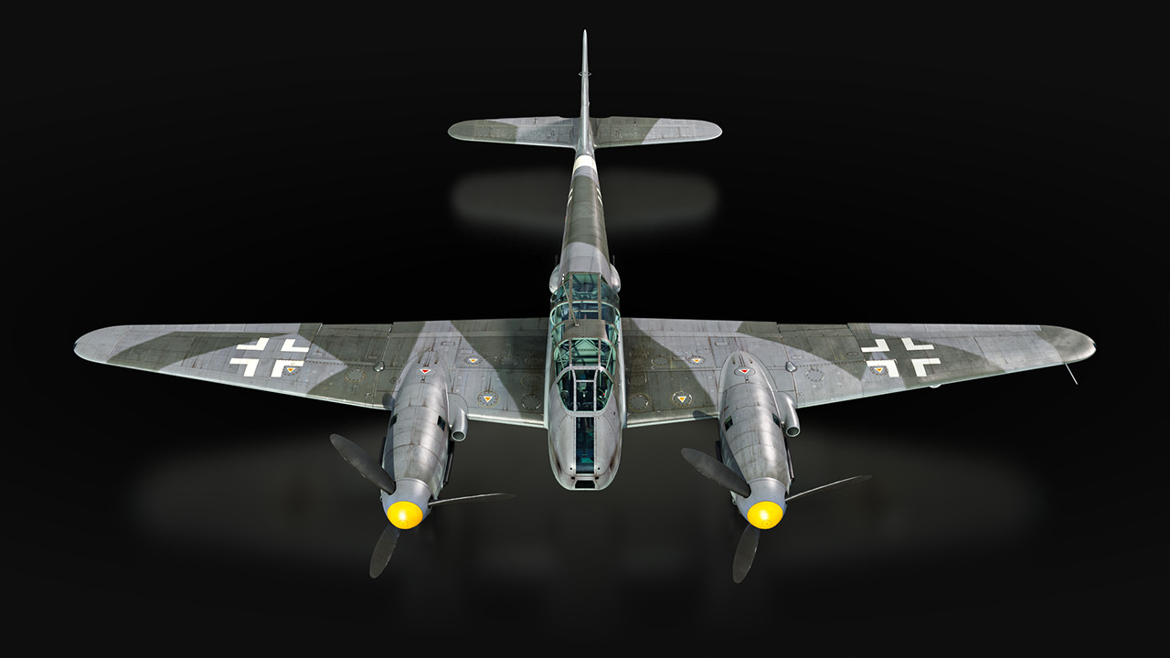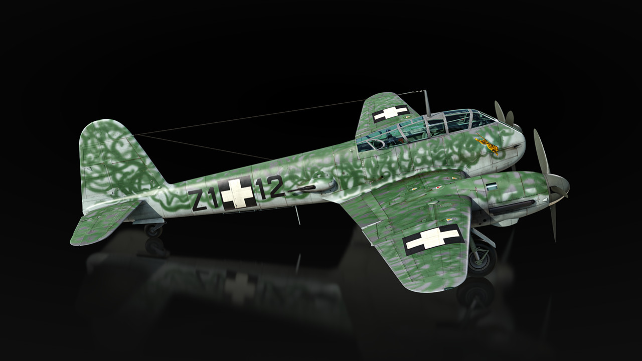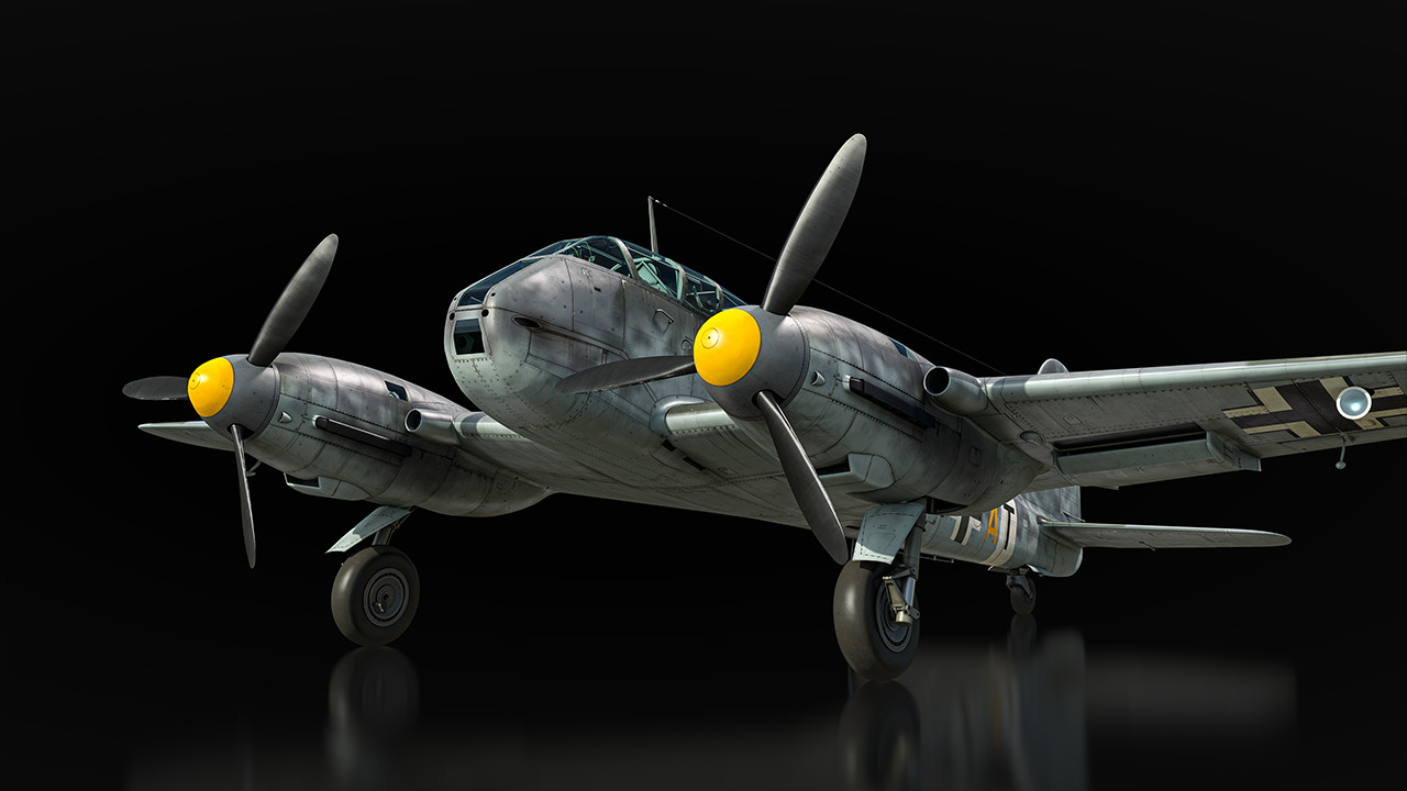 Мы планируем представить в игре сразу несколько модификаций Me 210. Базовая ранняя версия A-1 появится в ветке Германии, самолёт получит курсовую батарею из пары 20-мм пушек и пулемётов, а также бомбовое вооружение — в бомболюке размещаются осколочно-фугасные бомбы в калибрах от 50 до 500 кг или одна бронебойная на 1000 кг! За оборону отвечают дистанционно управляемые турели с пулемётами MG 131.